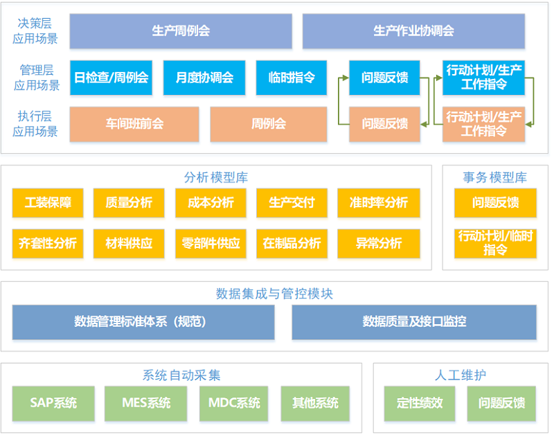 - 生产异常处理、作业会督办执行等采用线下方式,执行效率低、执行过程不透明,对执行的现状和整体状况缺少即时统计和分析。